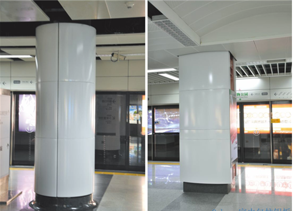 圆弧包柱铝单板是为室内外柱子装饰定制的产品,传统的柱子一般用到大理石,但大理石材料的限制性无法满足建筑装饰发展的需求。因此包柱铝单板其优越的环保性能及造型工艺性得到广泛使用,可根据不同的设计要求加工成不同规格的包柱铝单板产品,也可以在包柱铝单板产品表面镂空成不同的图案。
